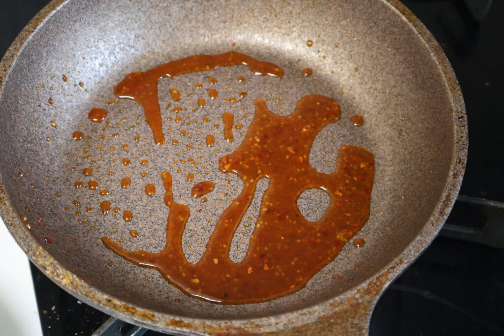 そして残ったソ-スを弱火でトロミが出るまで加熱します。