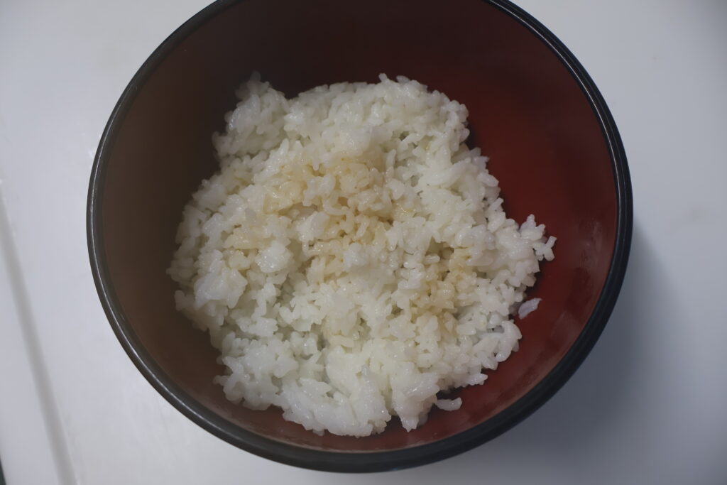 次に温かいご飯を器に入れて小さじ一杯の「めんつゆ」を回し入れて