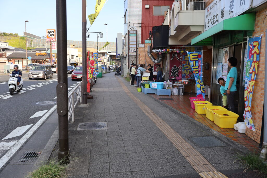 メイン通りに出ると目の前には魚釣りゲームの出店がありました。