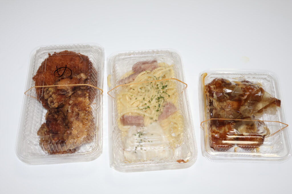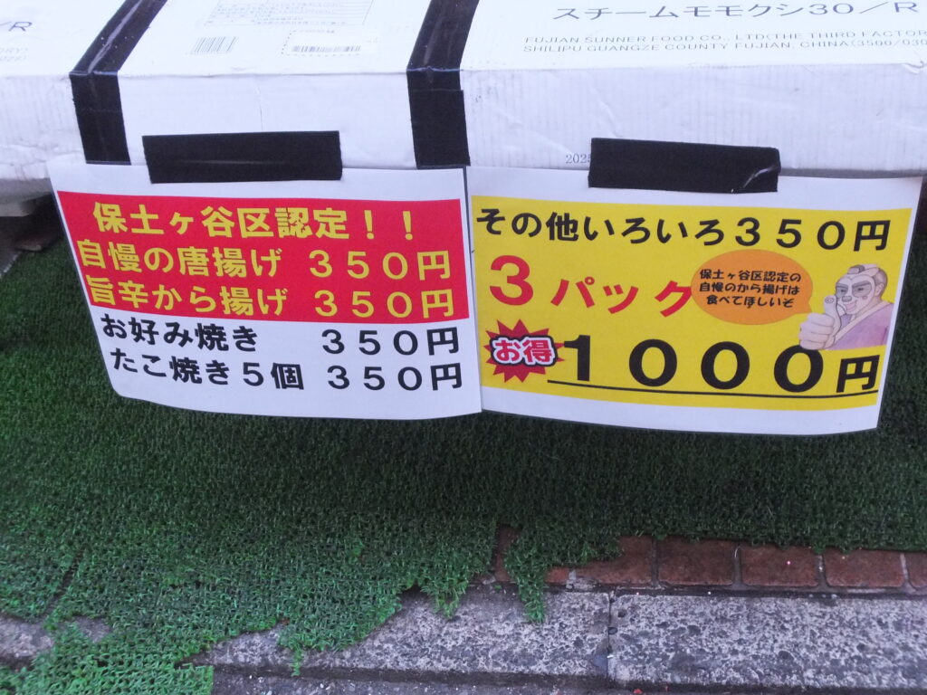 ここは「唐揚げ」2種類と「お好み焼き」「たこ焼き5個」とメニューには