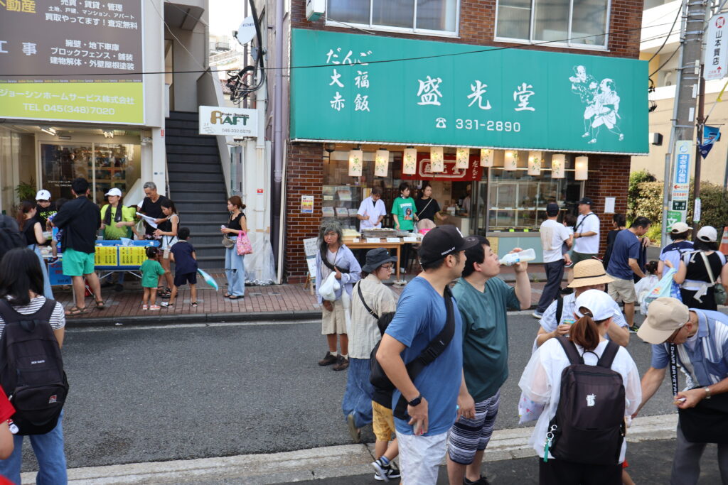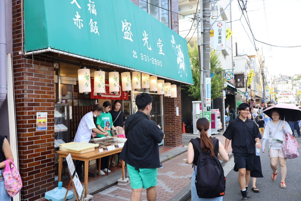 会場の前には和菓子屋の「盛光堂」があり店頭で「焼き餅」を売っていました。