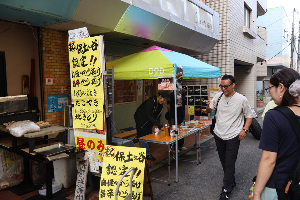 その隣の焼き鳥屋では豚タン焼と生ビールを販売していて、また誘惑が…