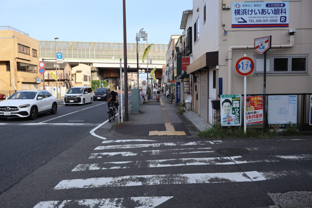 信号機が見えてきましたが大通りを渡らずに真っ直ぐ行きましょう。