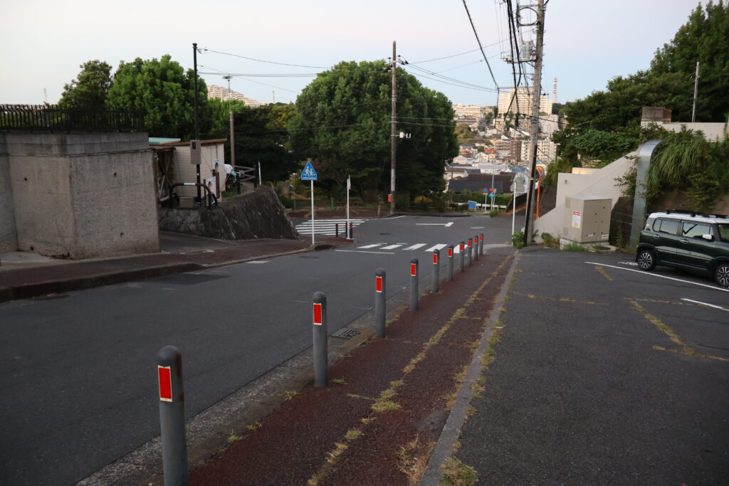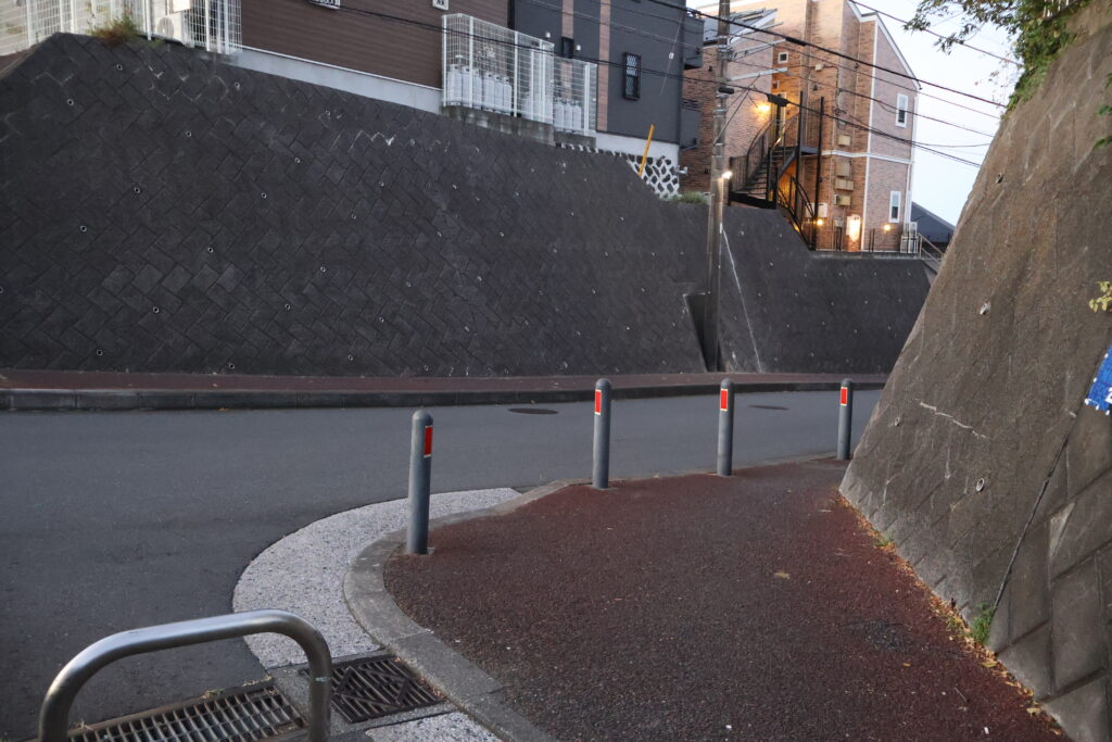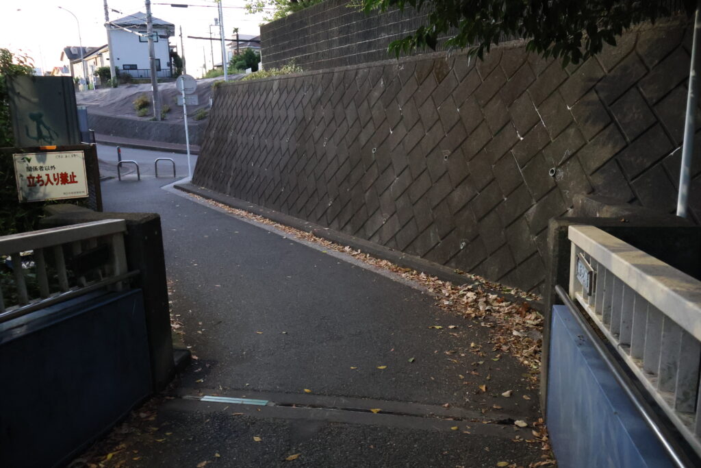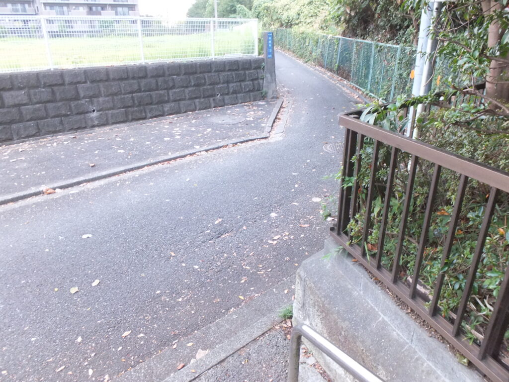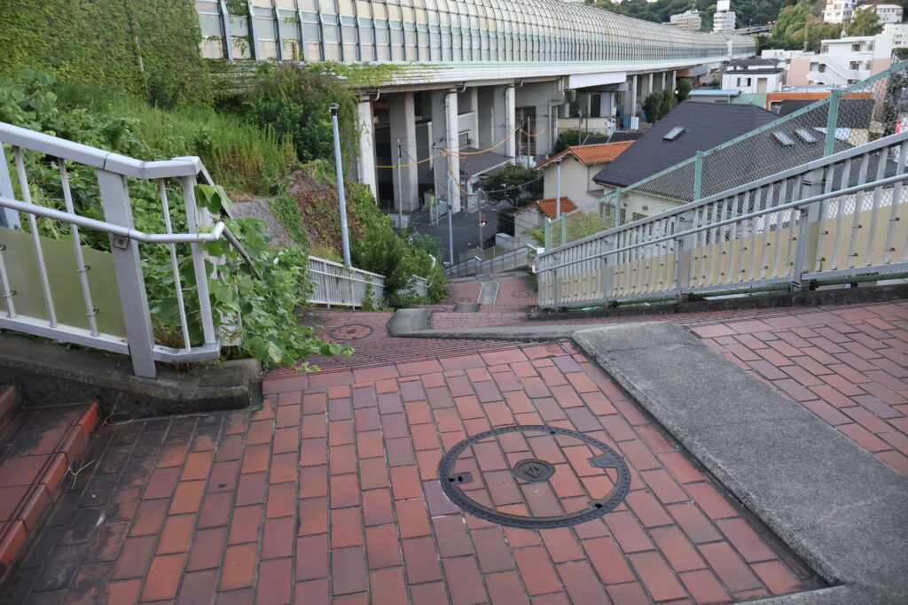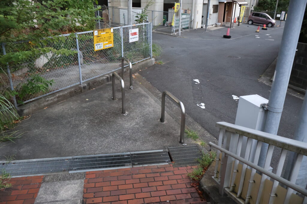 この先の右側の階段を降りて公園出ましょう。