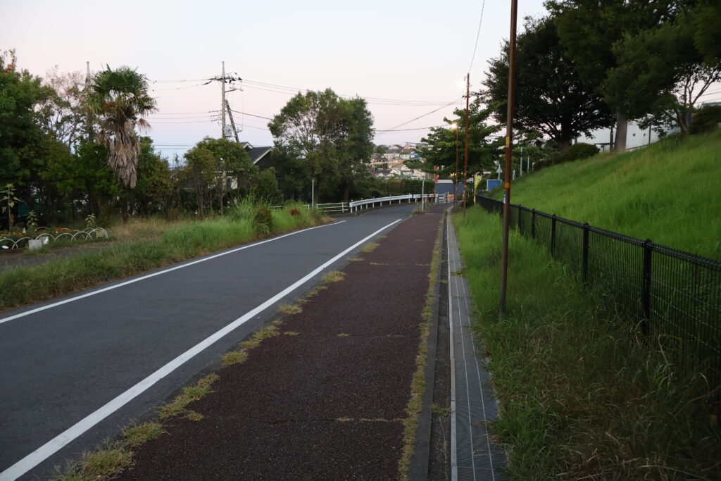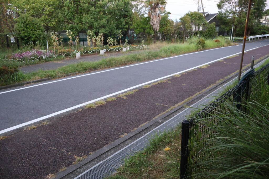 右側は住宅で左側はバイパスに挟まれた小路を行きましょう。