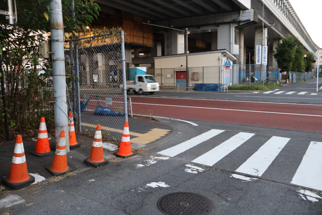 真っ直ぐ行くと和田町駅には行けないので、ここを右側に曲がりましょう。
