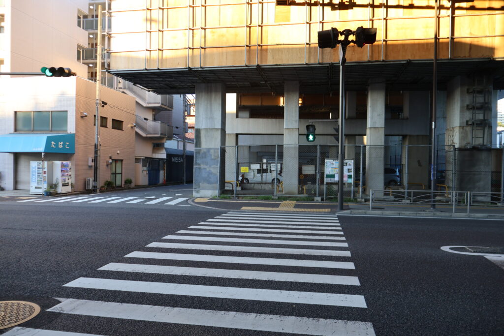この先の横断歩道を渡りましょう。