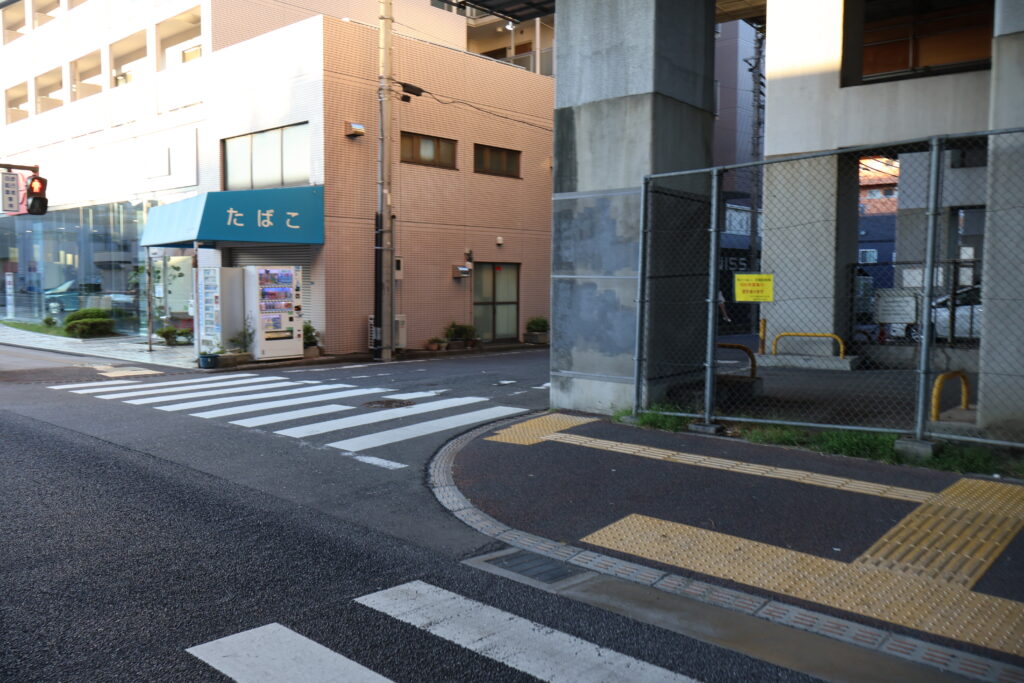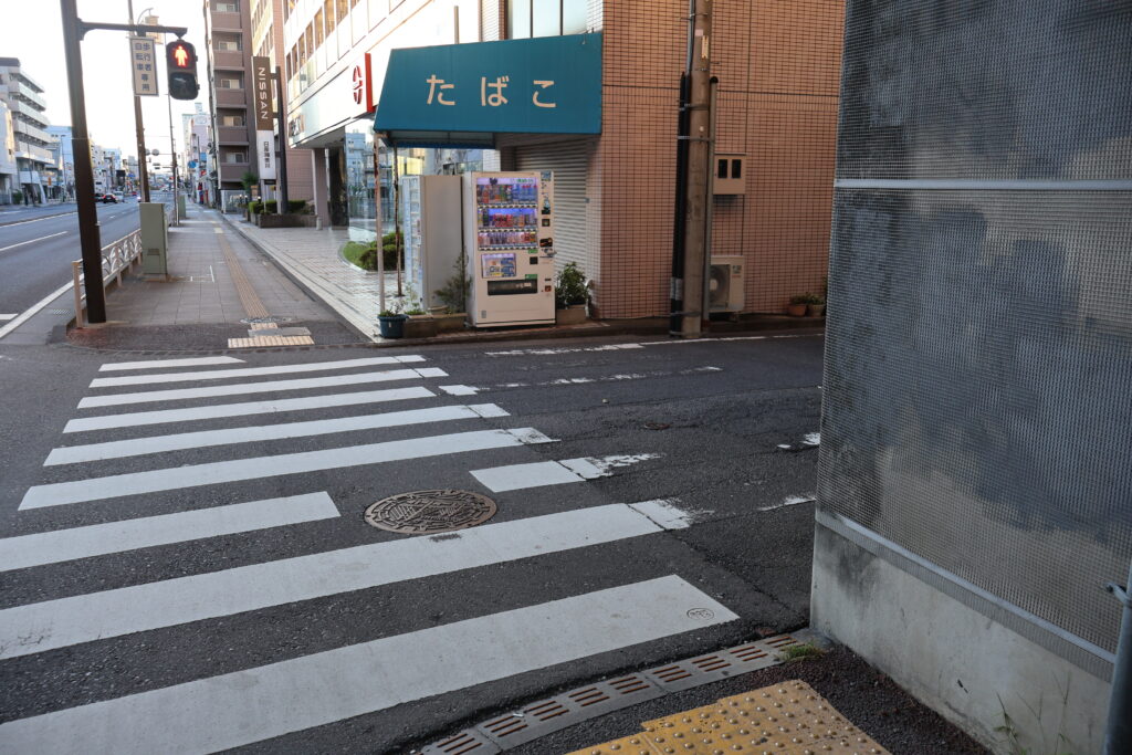 渡った先の右側の横断歩道を続けて渡りましょう。
