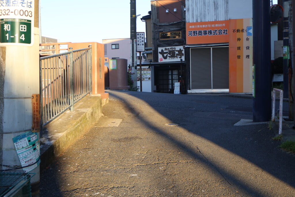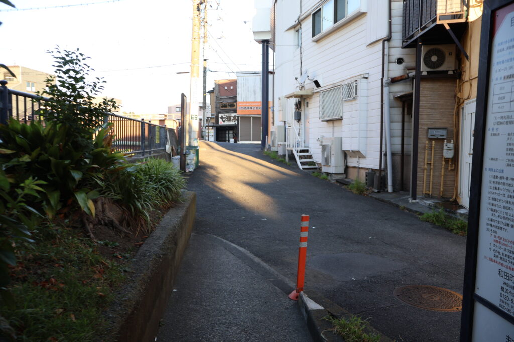 右側に行くと和田町商店街に戻るので左側に曲がりましょう。