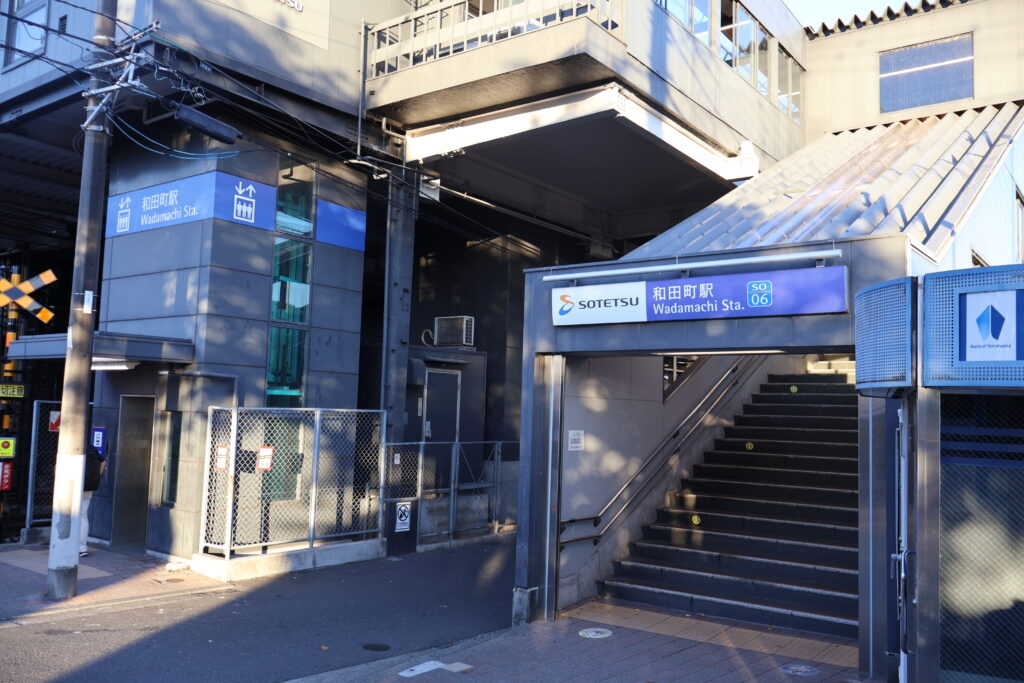 渡った先の右側に和田町駅が見えてきました(p_-)