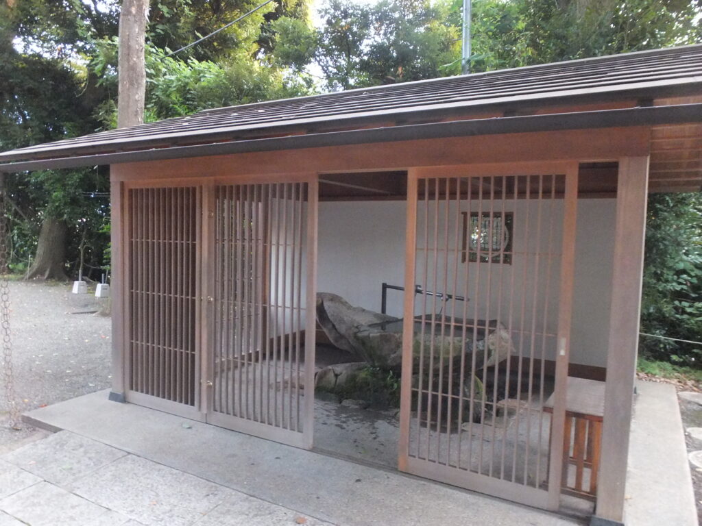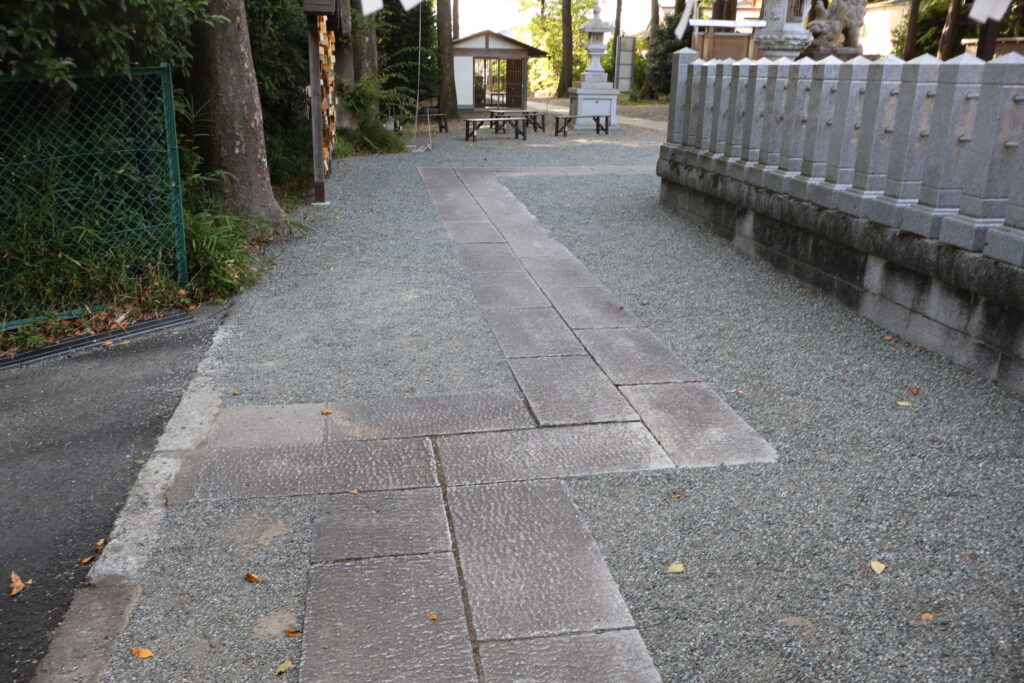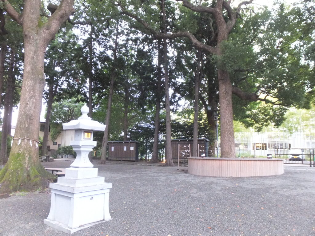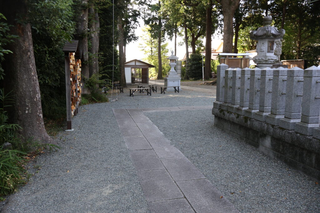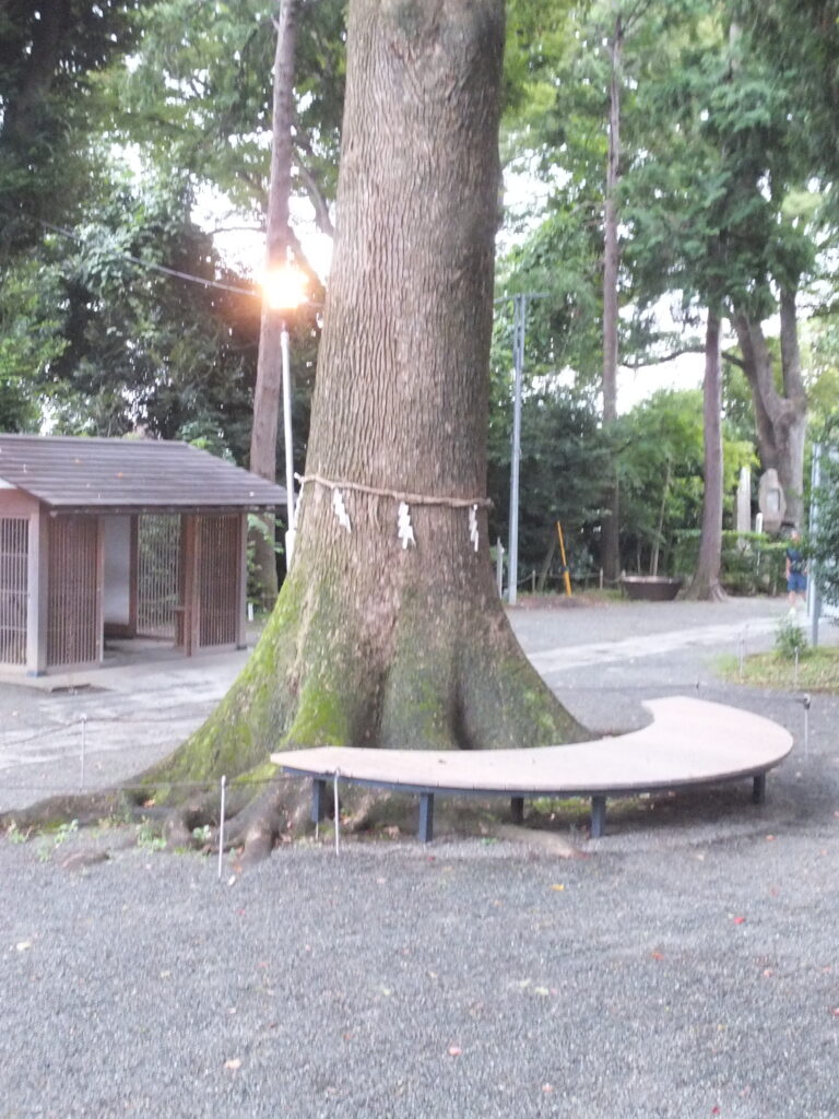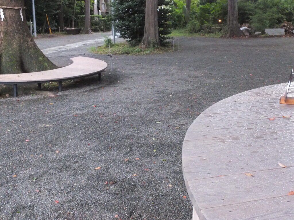 道理で境内では多数の杉が植えられていて奥には杉の周りに休息スペ-スまで