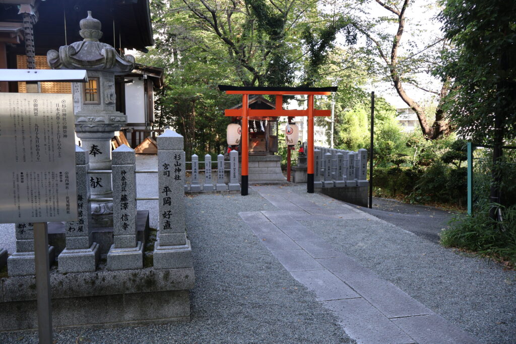 鳥居を出て左側にあった「杉山神社」の石碑の裏に何やら彫られてます(p_-)