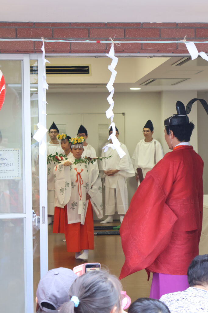 中では子供達の「奉納の舞」から始まっていて舞の終了後に神主による