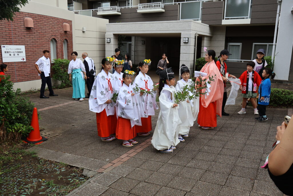 マンションの集会場で式典が行われているとの事です。