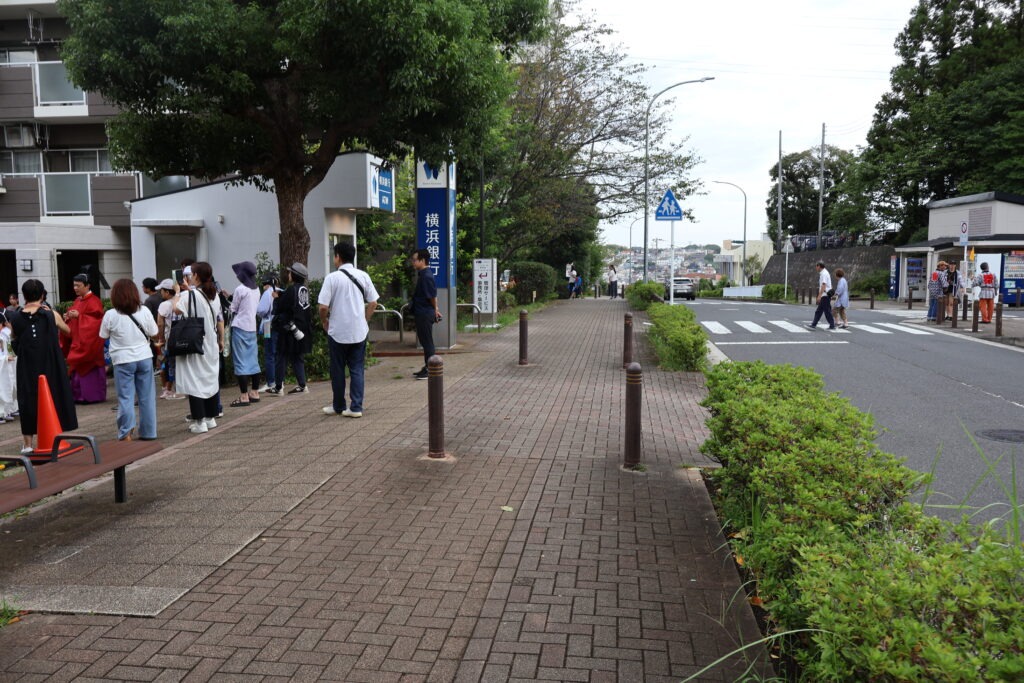 この先の横浜銀行ATMの手前に人が集まっていますねぇ(p_-)