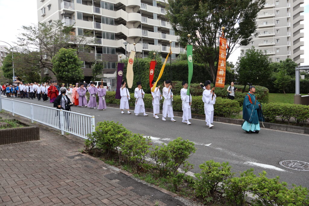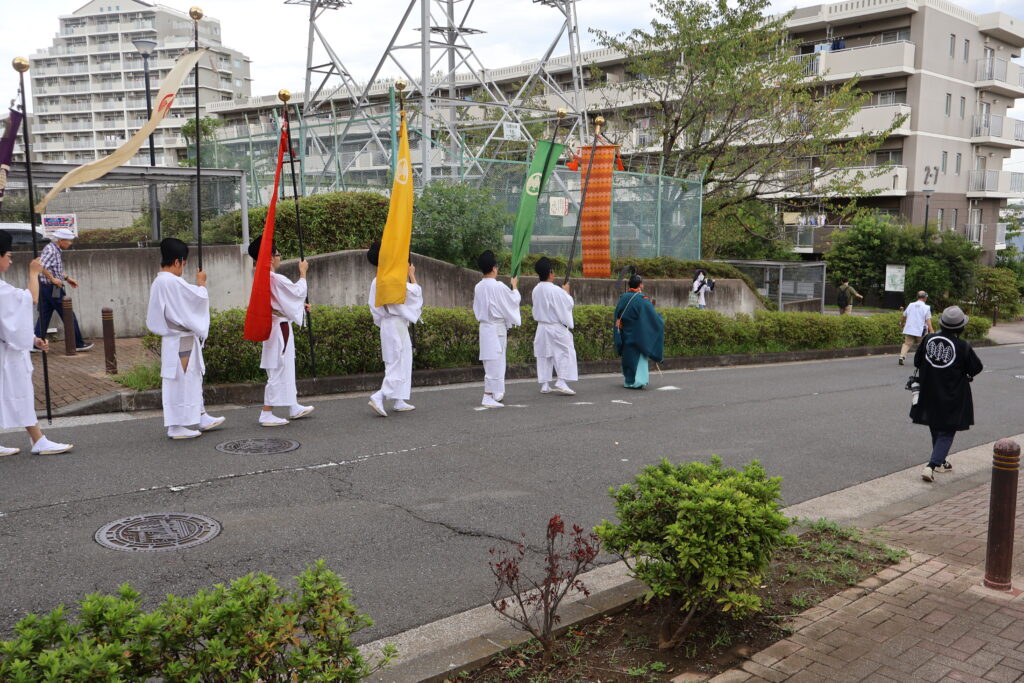 神主さんの後には暖簾持ちが続きます。