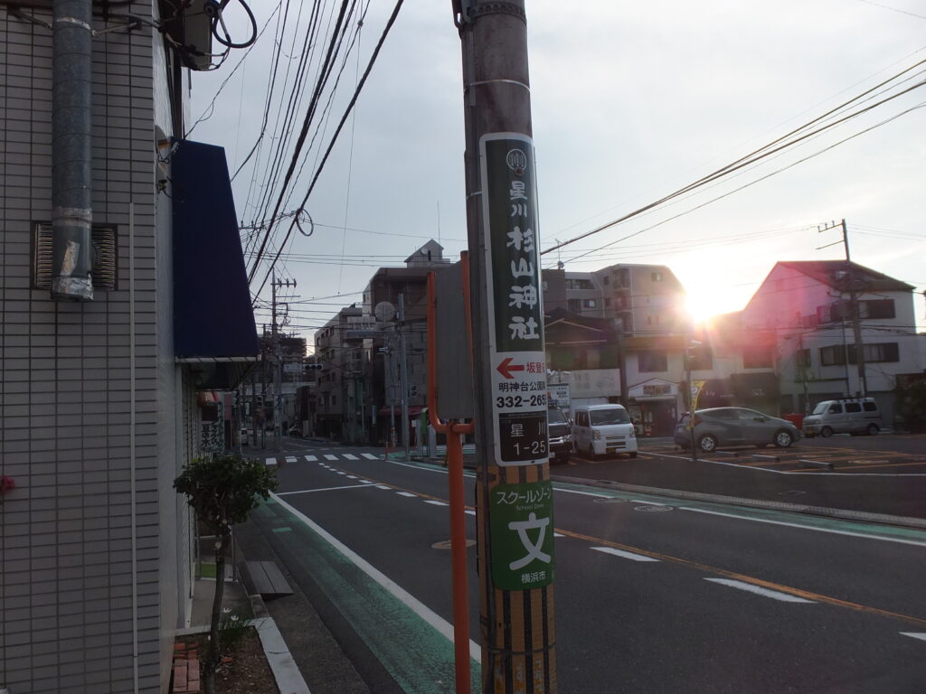 曲がった先の電柱に「星川杉山神社」の案内がありましたよ(p_-)