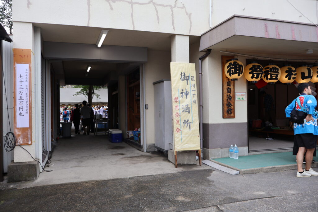 更に真っ直ぐ行くと左側の「町内会館」が「祭会場」となっていて御神酒を