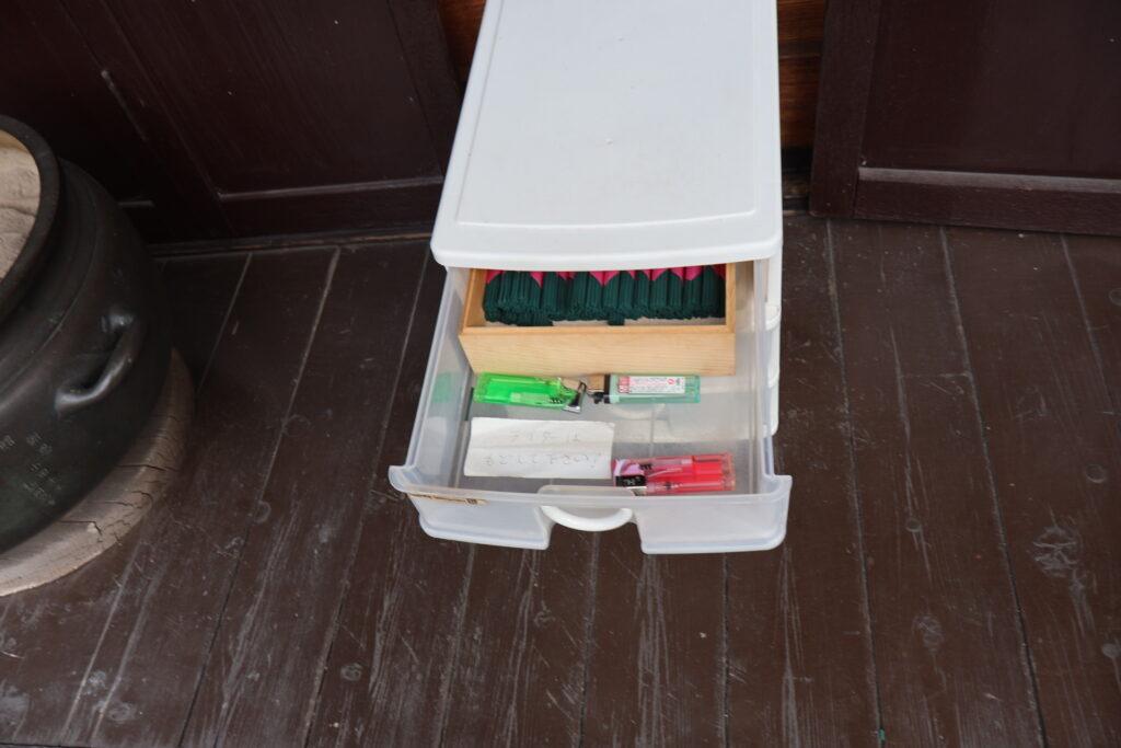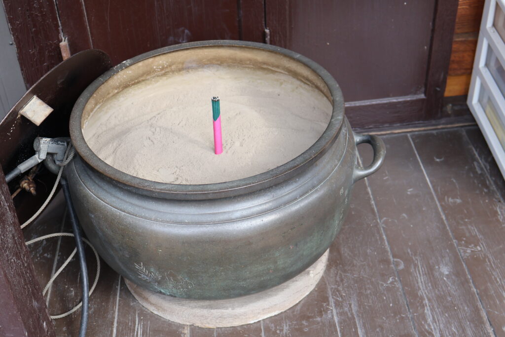 線香代50円を賽銭箱に納めてから火を付けて火鉢にお供えしましょう。
