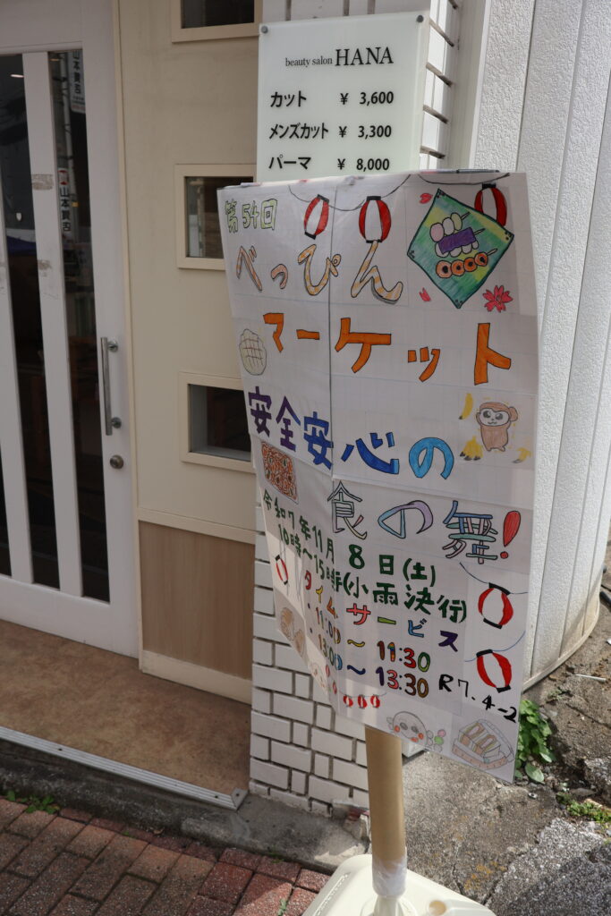 電柱にも「べっぴんマ-ケット」の催し物内容がありました(p_-)