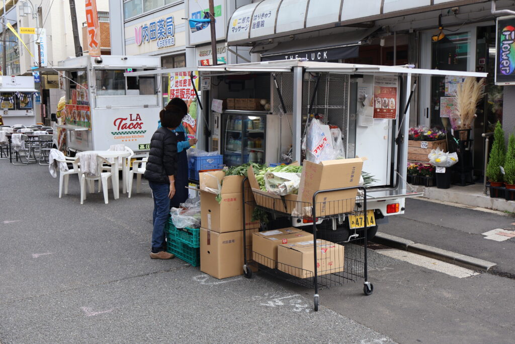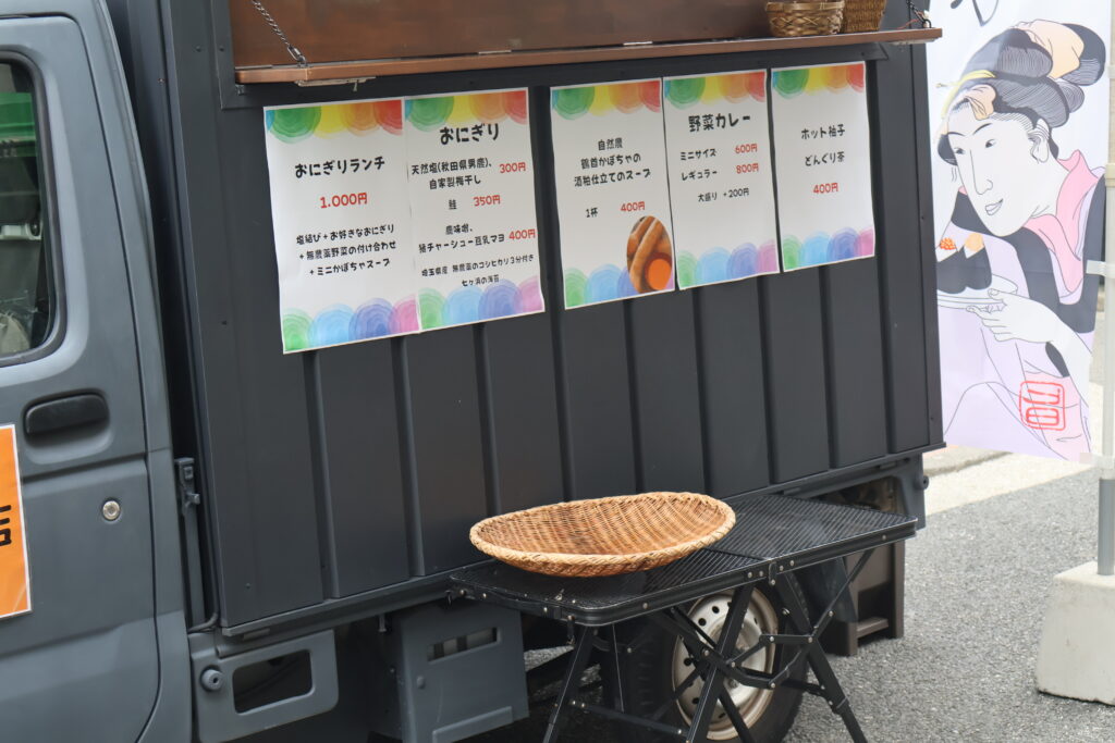 その隣が「おにぎり」や「野菜カレ-」と「ス-プ」のキッチンカーが