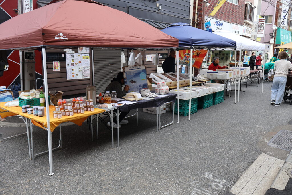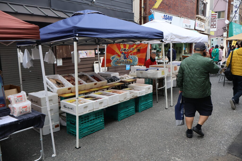 その隣が三崎から魚屋が出店していて鮪や干物が格安で販売してました(p_-)