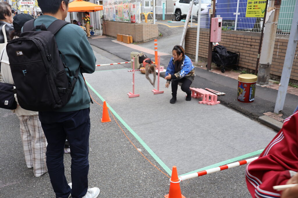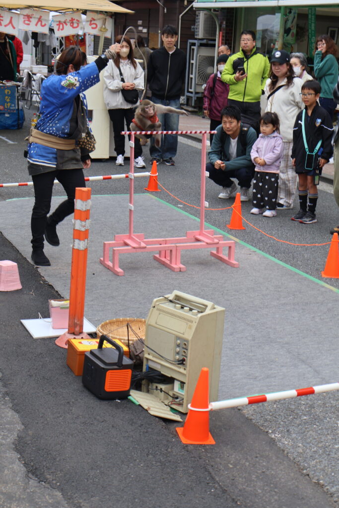 購入後に店を出ると店の前に人が集まっていたので近づいてみると「猿回し」が
