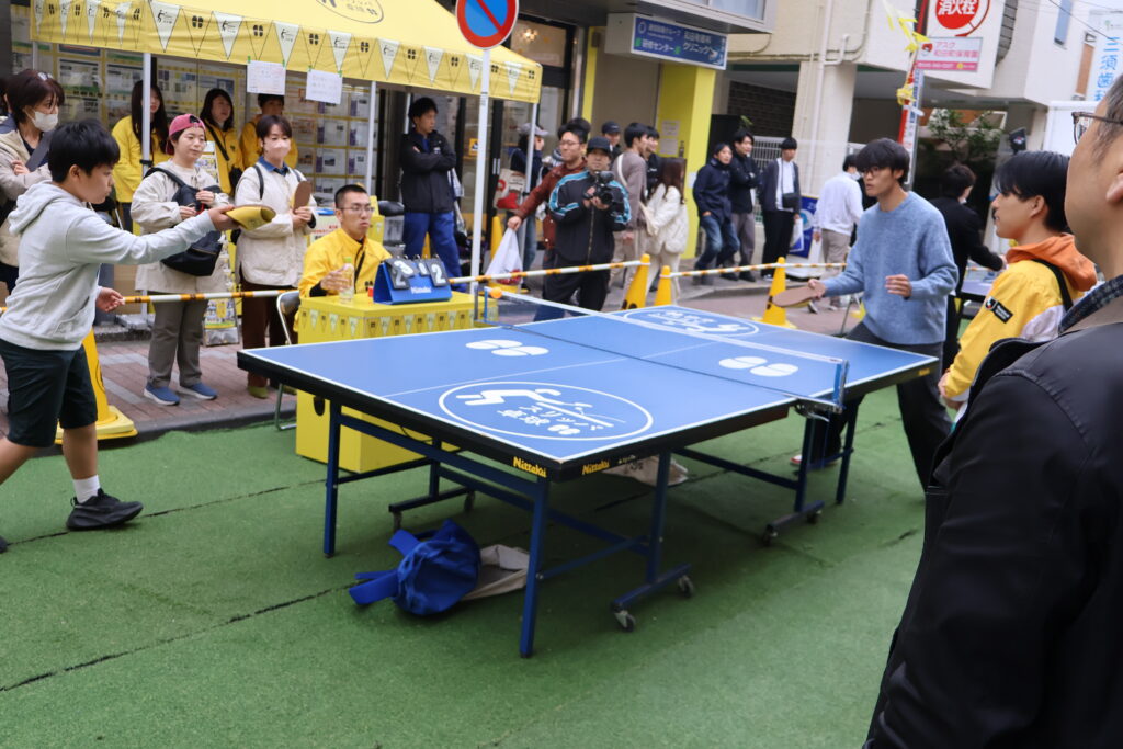 歓声の方に進んで行くと卓球台が見えてきました(p_-)