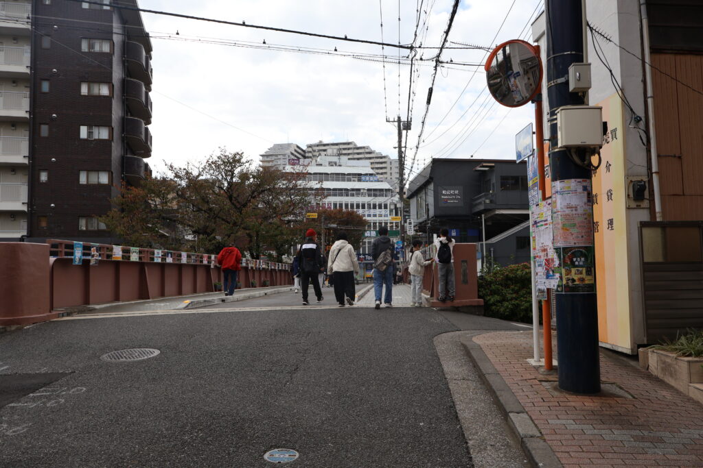 ア-ケ-ドをくぐって橋を渡って行きましょう。