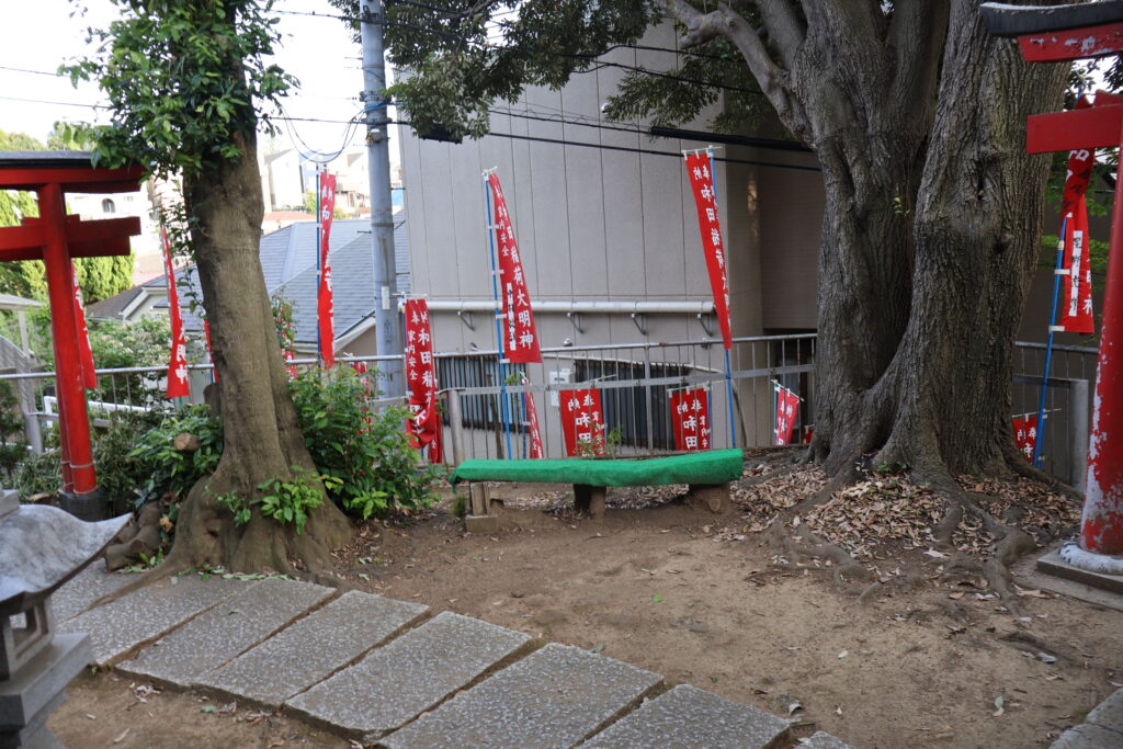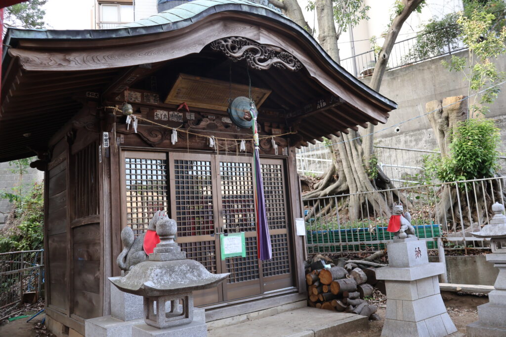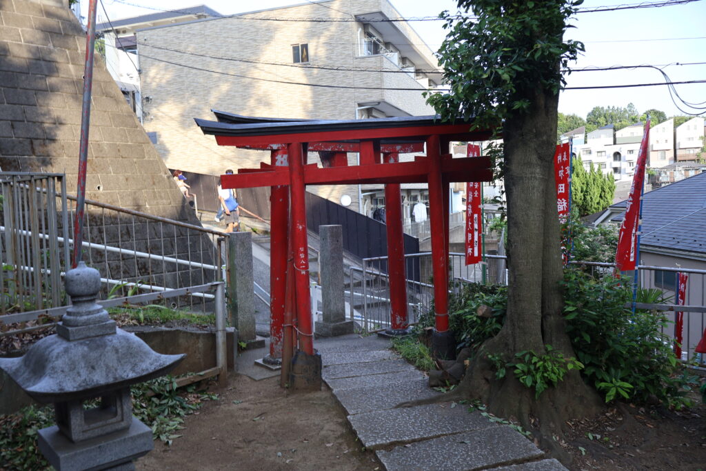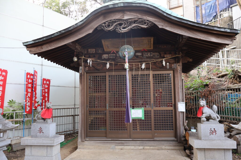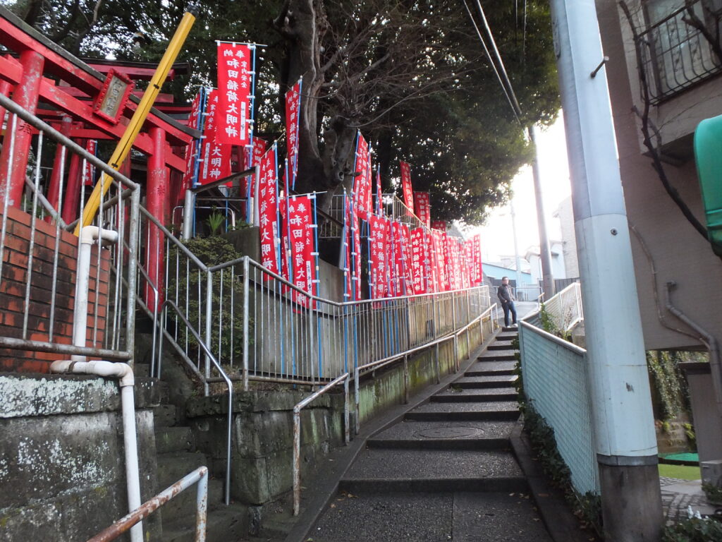 階段を登って直ぐに「和田稲荷神社」が見えてきました(p_-)
