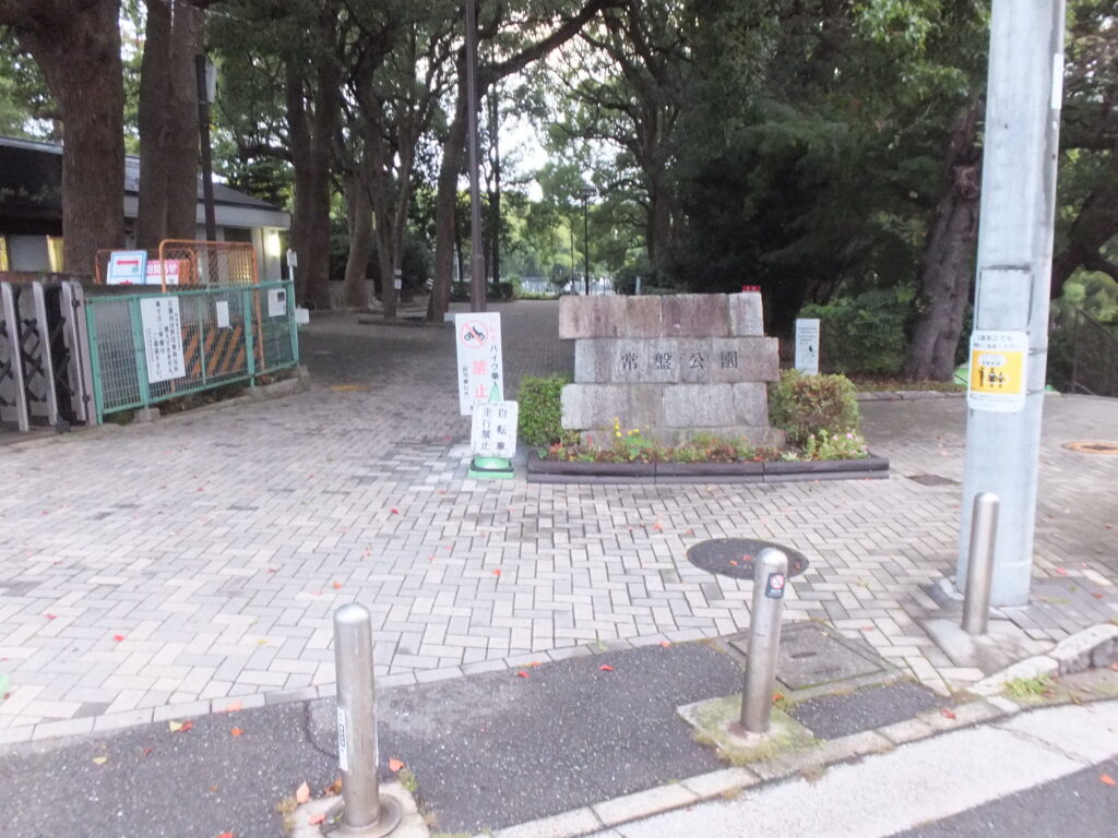 登った先の左側に今回の目的地「常盤公園」が見えてきました(p_-)