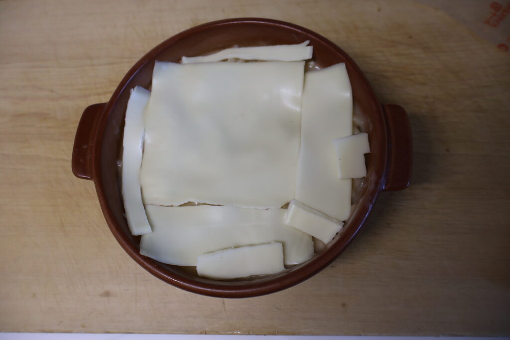 混ぜ終えたら「とろけるチーズ」をのせます。今回は2枚使いました。