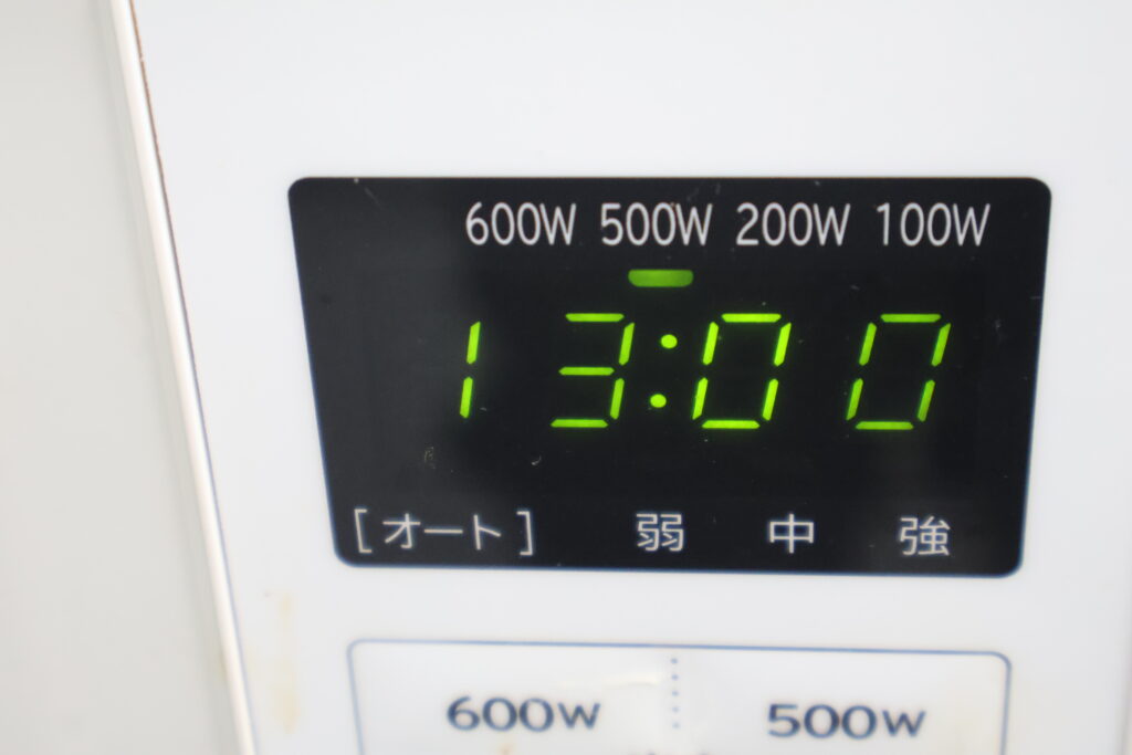 今回のパスタの茹で時間は8分ですのでラップをせずに500Wでプラス5分で