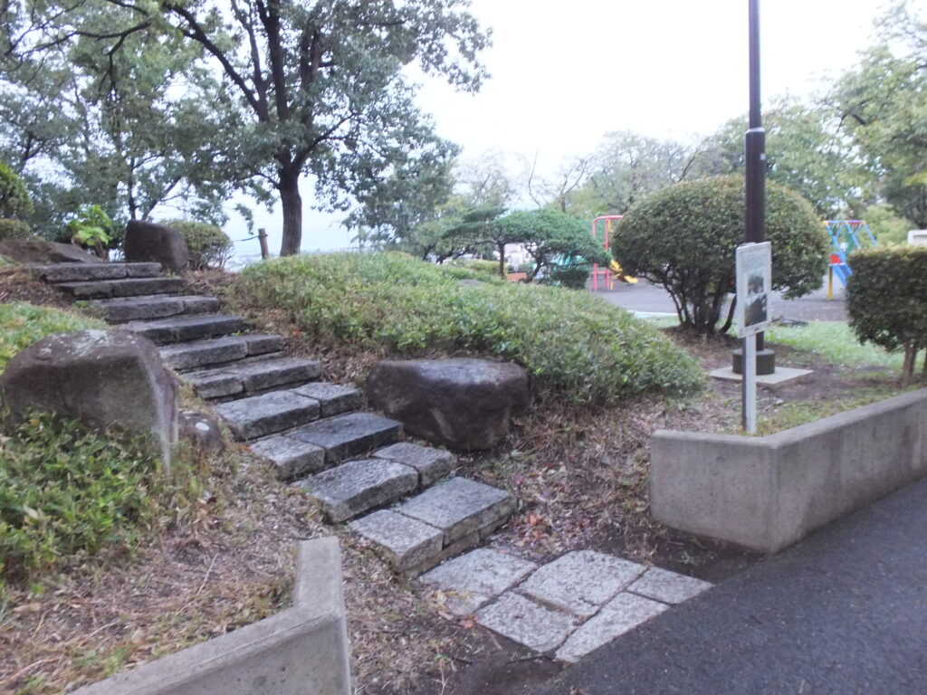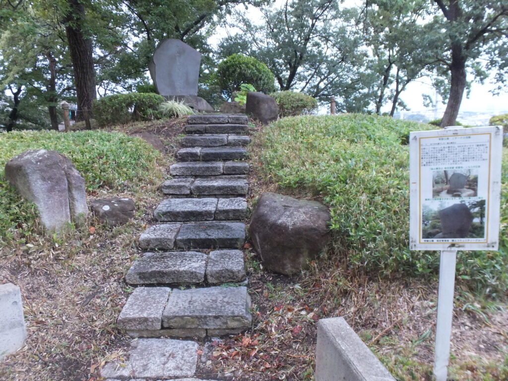 左側の小高い丘に石碑が見えますねぇ(p_-)