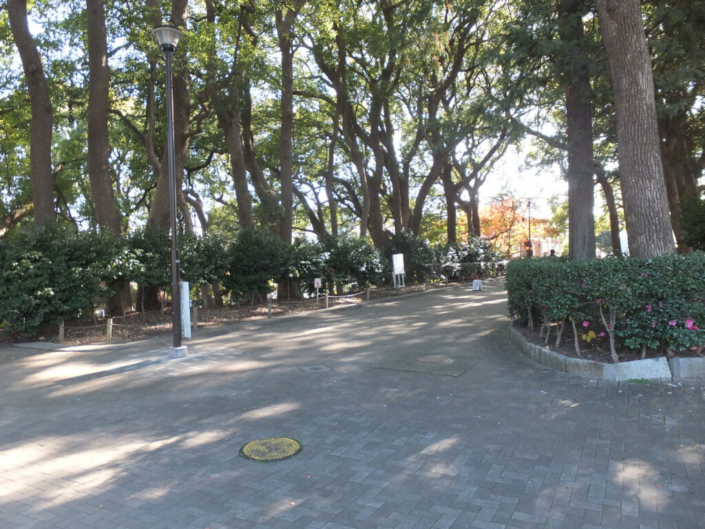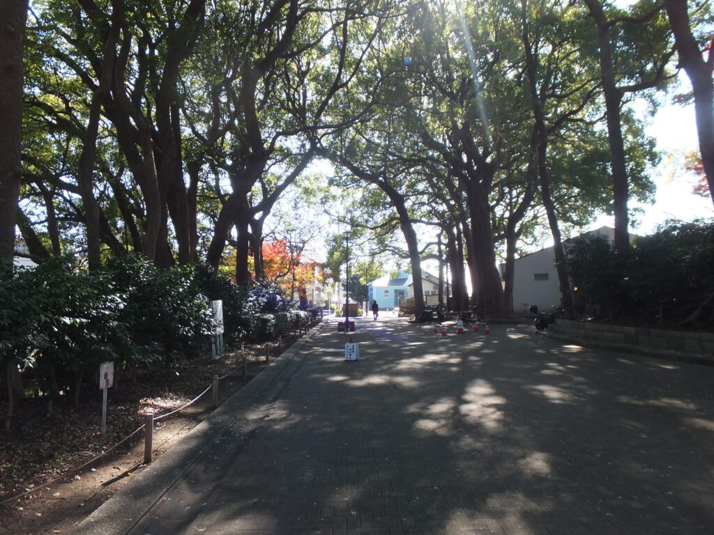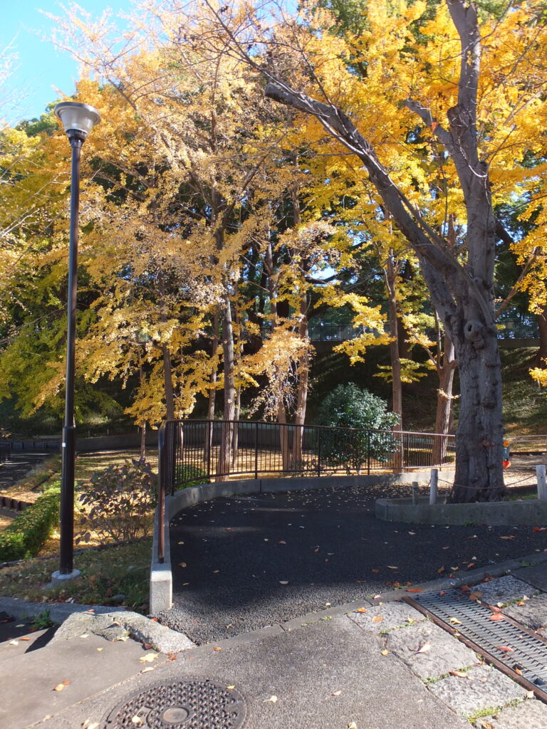 前回気になった屋根がある場所を確認しに黄色くなった銀杏を見ながら