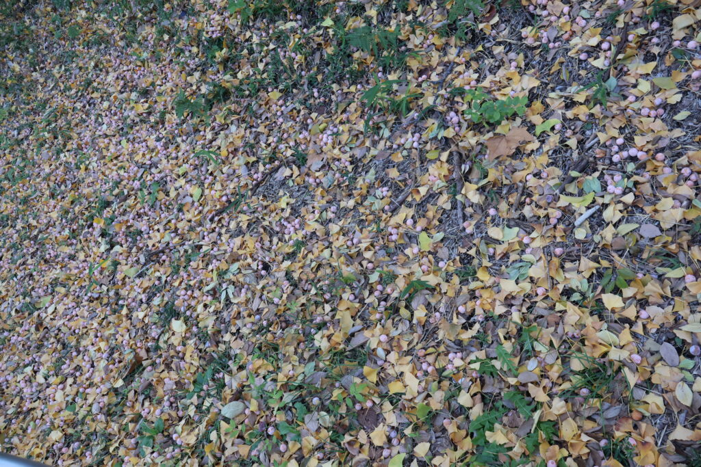 歩道をよく見ると多数のギンナンが落ちていました(;^ω^)