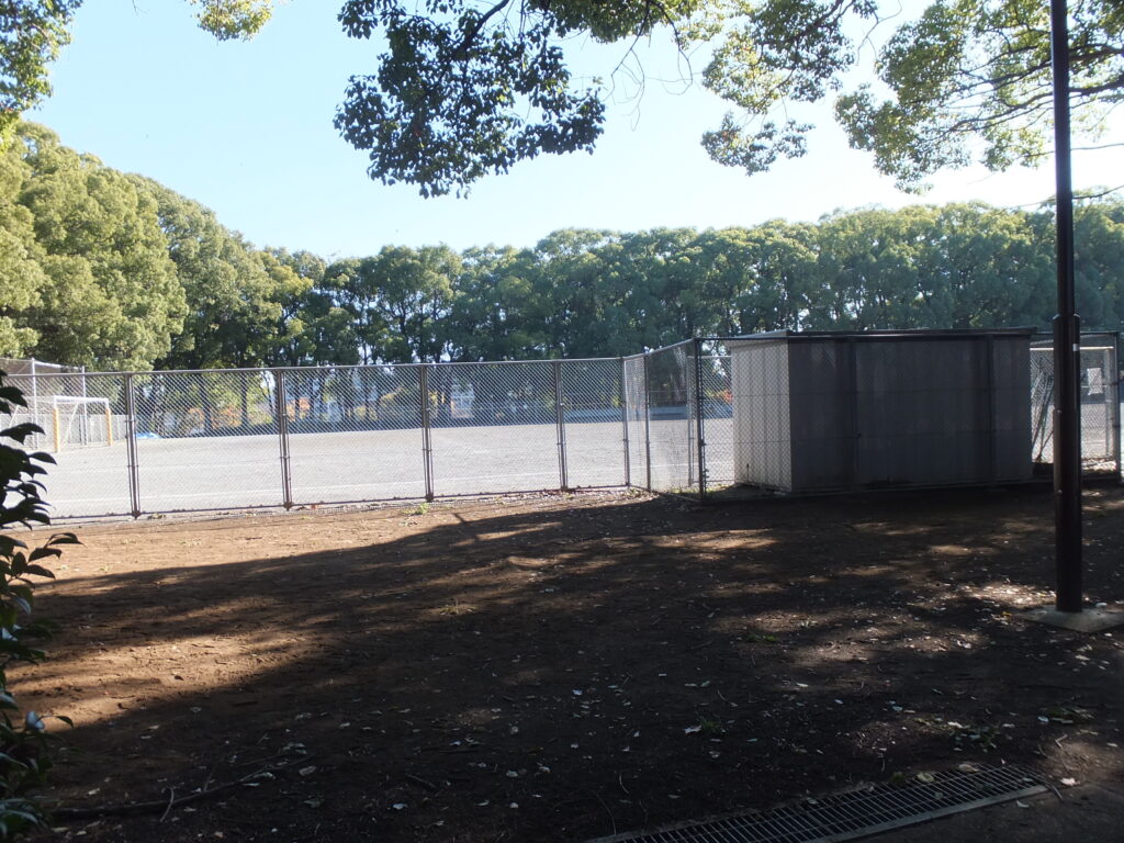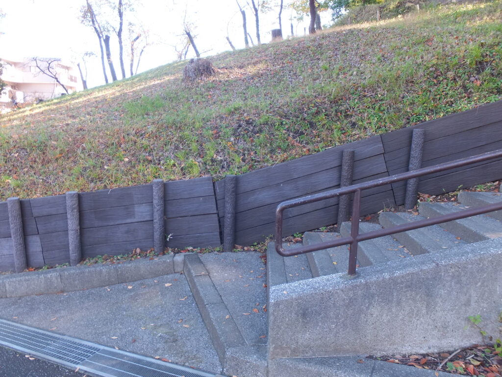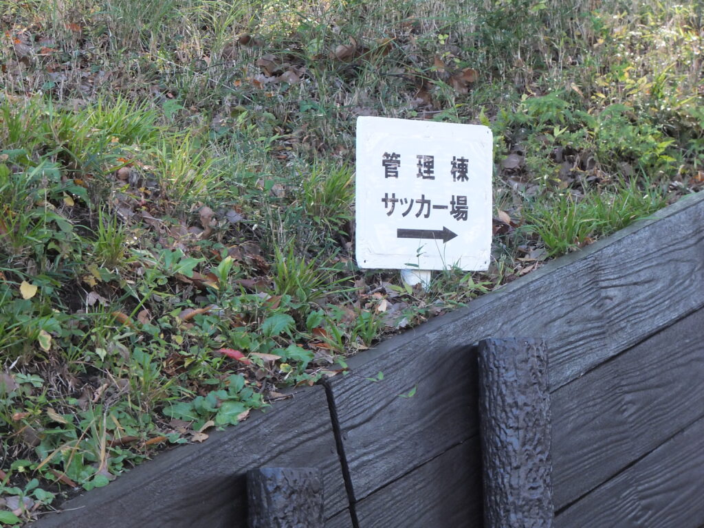 案内があり階段の先は先程のサッカー場や管理棟に向かうみたいです(p_-)