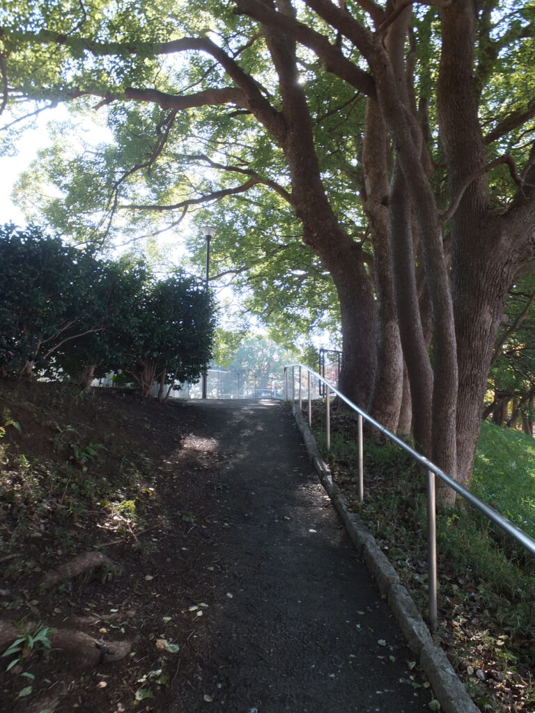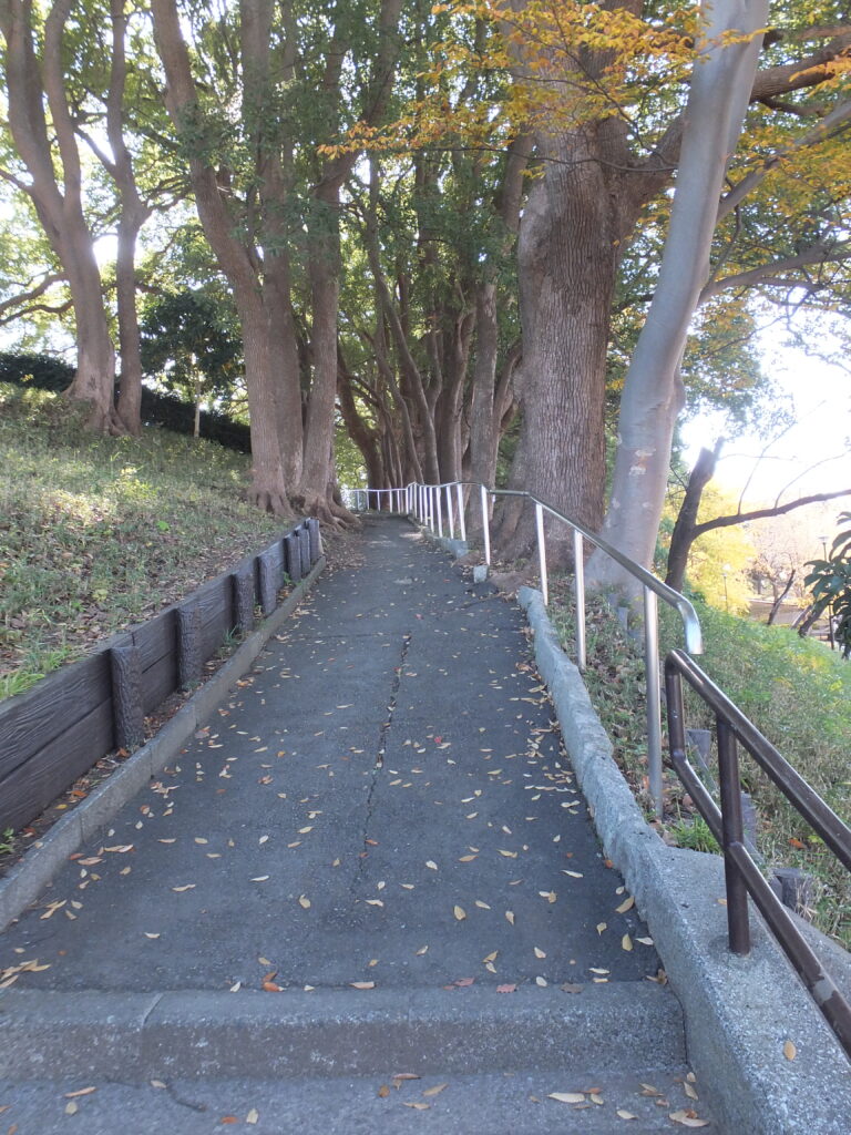 この先は公園を出てしまうので右側の階段を登って行きましょう。
