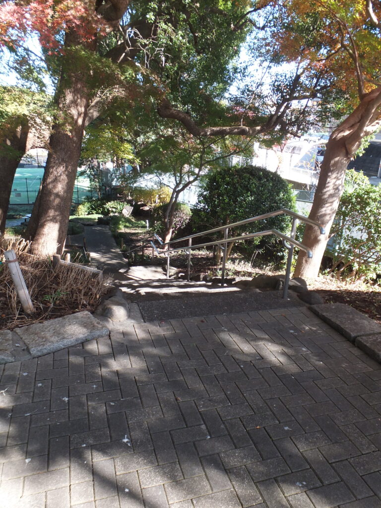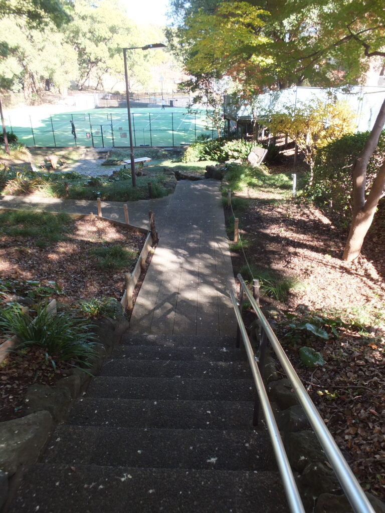 ここを左側の階段を下って行きましょう。