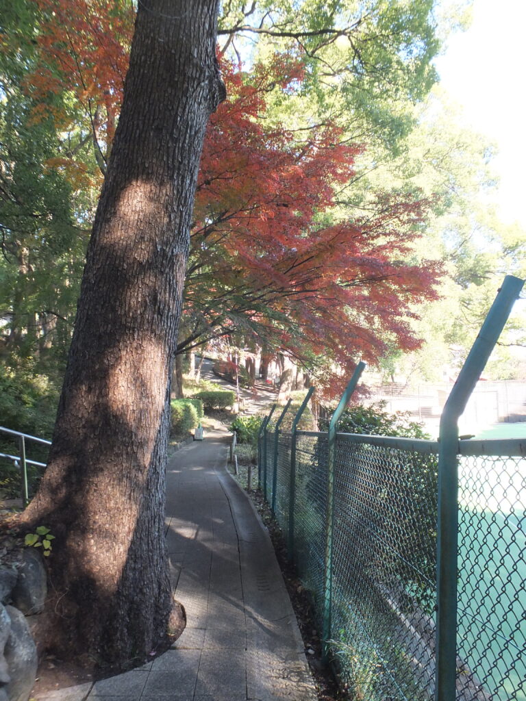 この先にテニスコートが見えますねぇ(p_-)