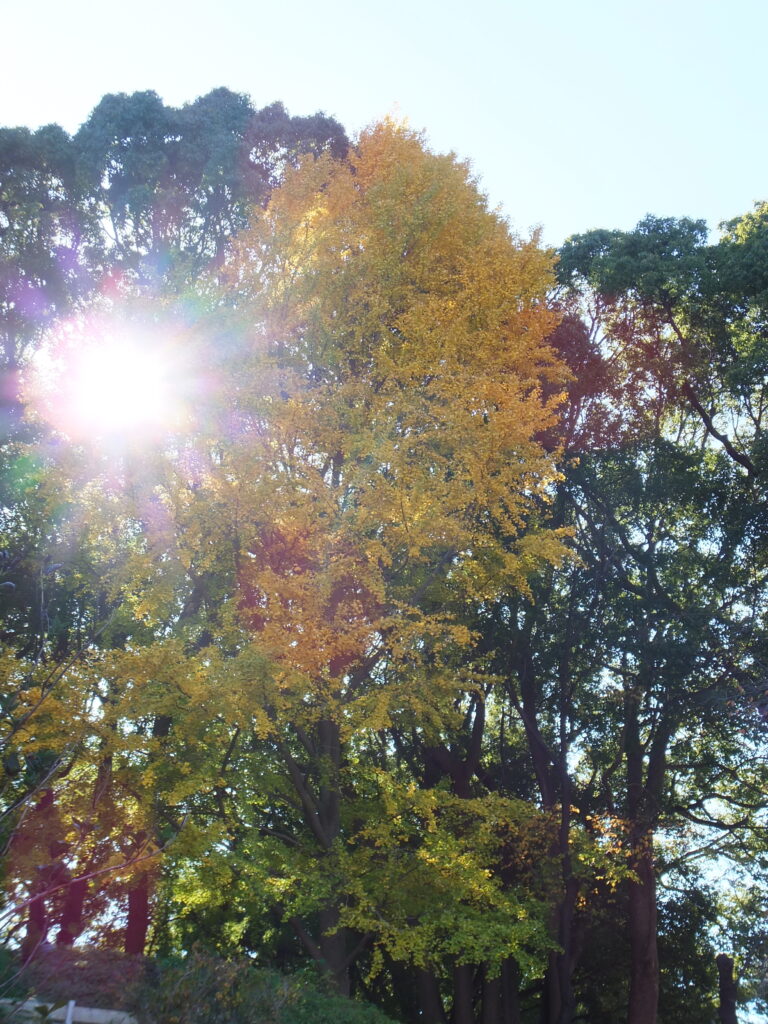 ここにも色づいた銀杏があり隙間から陽が輝いていましたヽ(^。^)ノ