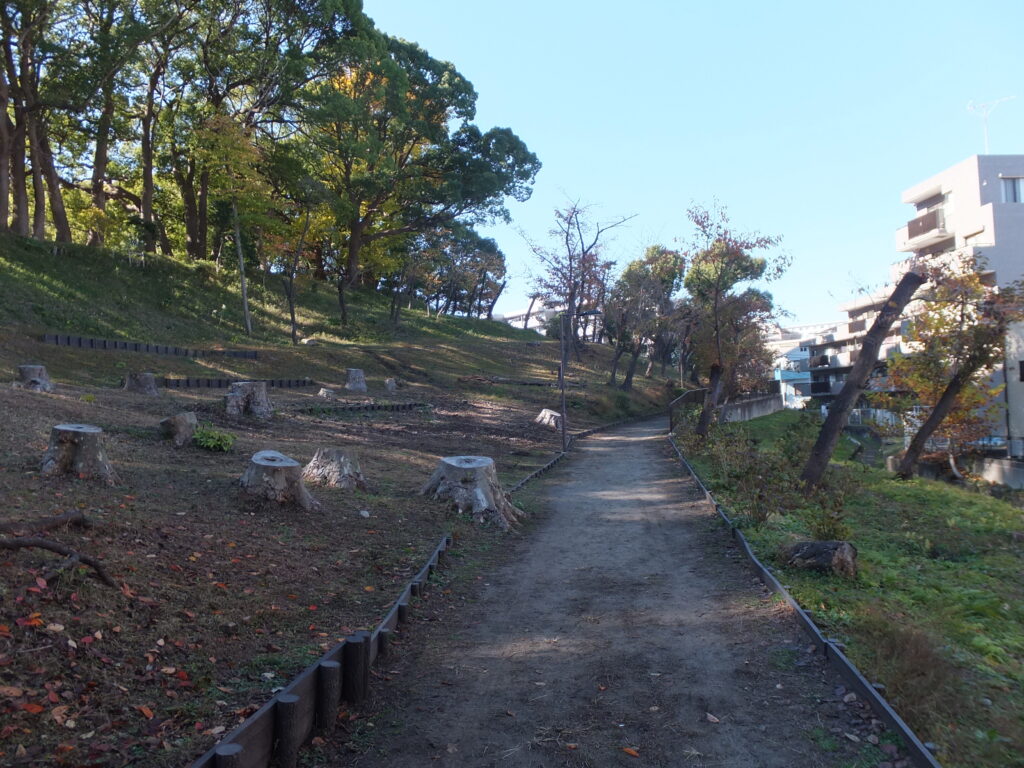 ここを真っ直ぐ行くと公園を出てしまいますねぇ(;^ω^)