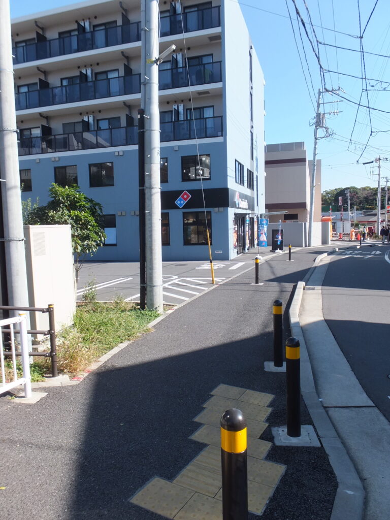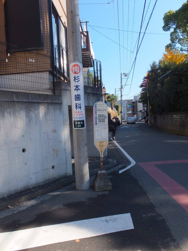 すると電柱の先にバス停が見えますねぇ(p_-)