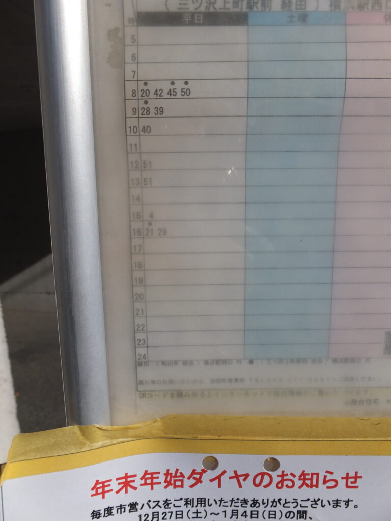 市営バスはもっと無くて8時台は4本ありますが9時台は2本、10時~13時台は