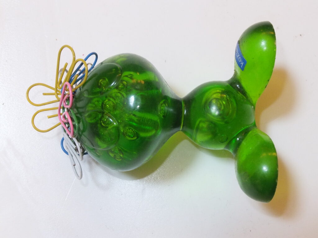 緑色のクリップ置きは頭の部分がマグネットになっていて沢山付けると