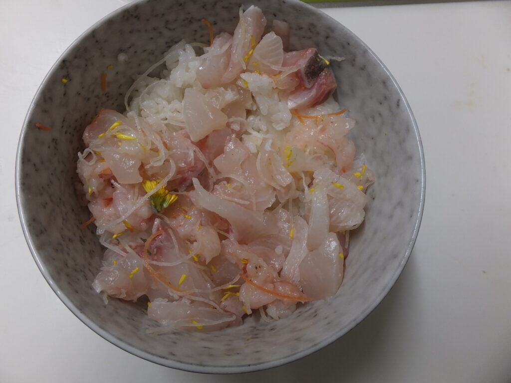 白身の刺身を使いましたがサーモンや鮪でもOKです。
