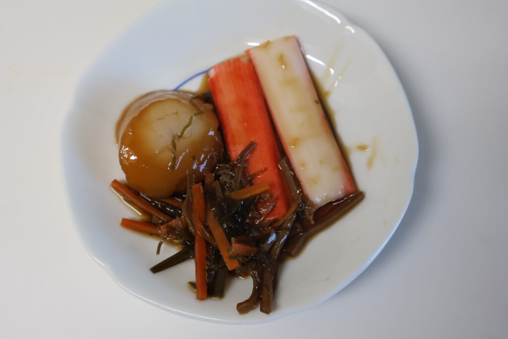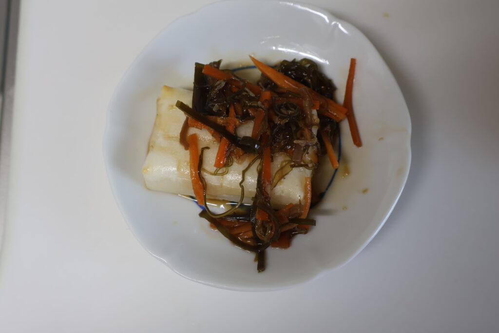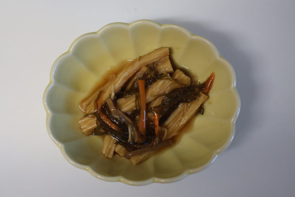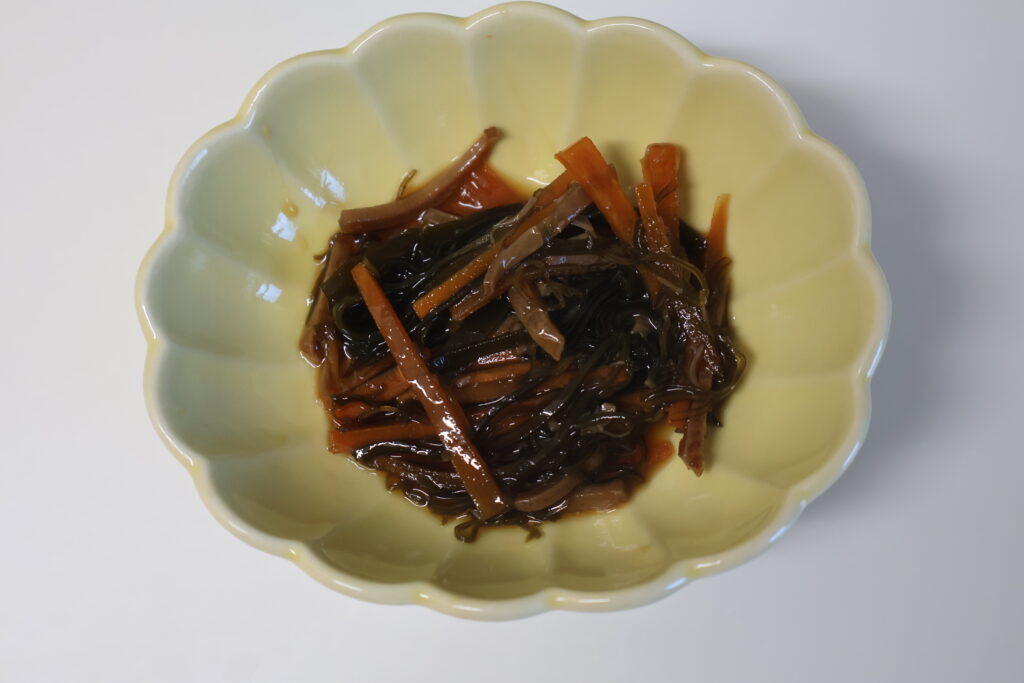 更に小鉢に長芋の短冊切りを入れて松前漬けと和えて1時間程漬けて