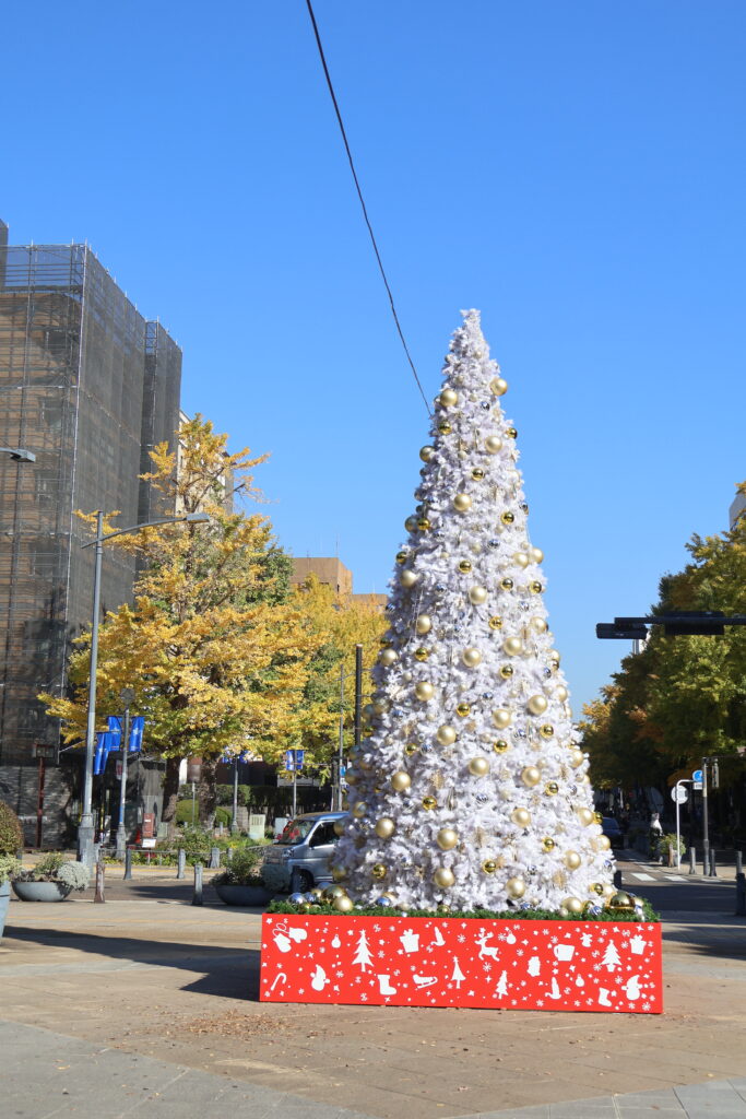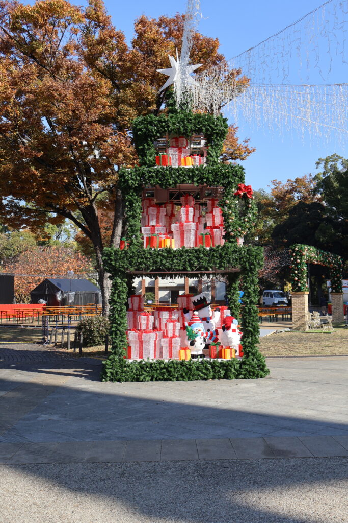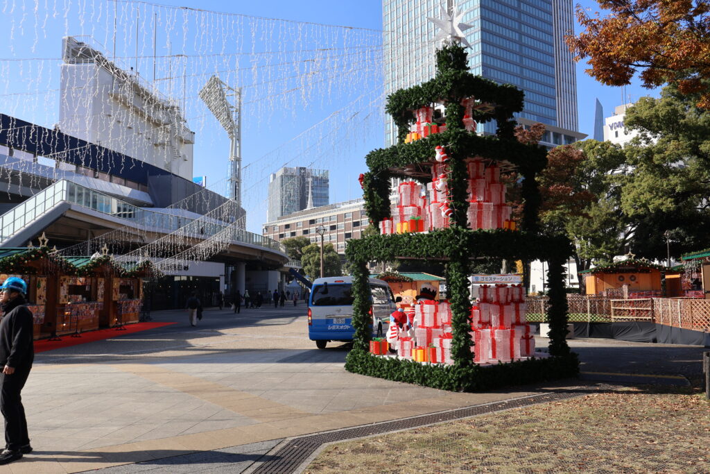 反対側のスタジアム前の出店横にもツリーを見つけました(p_-)