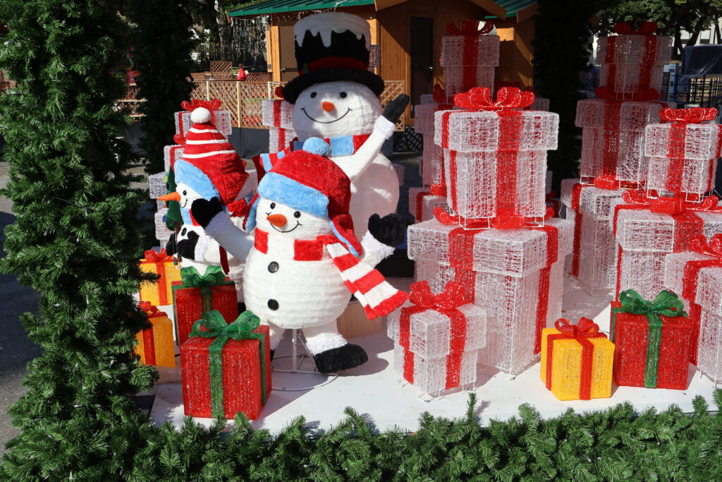 先程は正面でしたが側面から見ると雪だるまやプレゼントで装飾されていて