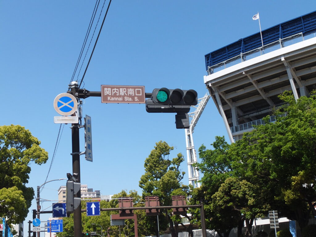 公園を出た先の「ハマスタ入口」交差点を渡りましょう。